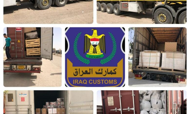 اعلنت الهيئة العامة للكمارك اليوم الاحد عن ضبط (٥)شاحنات  تحتوي على  (رول حديد ، بضاعة متنوعة ، مستلزمات دواجن ،سكة ستائر)  لمخالفتها ضوابط وتعليمات الأستيراد من قبل قسم التحري ومكافحة التهريب في مديرية كمرك المنطقة الوسطى .