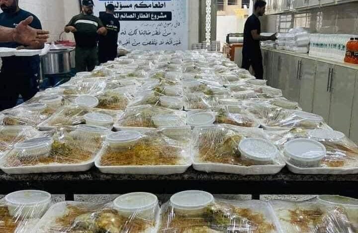 واظهرت الصور جانباً من عملية توزيع الطعام على المسافرين، فضلا عن عملية إعداد الوجبات التي تتضمن “الرز والدجاج” عبر توزيعها بصحون صغيرة على على طاولات موضوعة على قارعة الطريق المؤدي إلى محافظة الأنبار قدوماً من العاصمة بغداد والمحافظات الأخرى.
