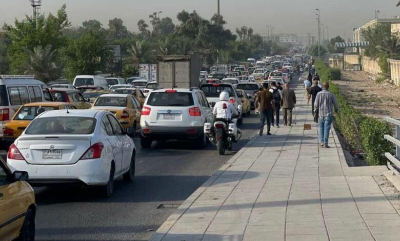 – ازدحام مكثف بدءا من محطة وقود الكيلاني الى ساحة الطيران بسبب الاغلاق الجزئي