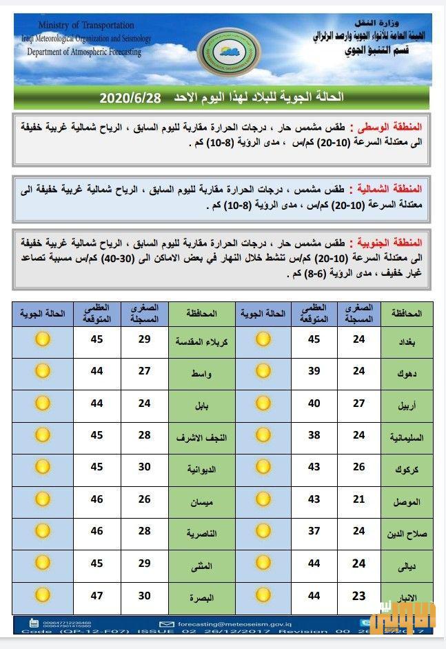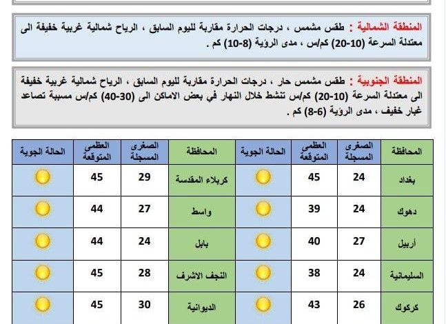 طقس العراق حار ومشمس.. تعرف على الحالة الجوية حتى نهاية الأسبوع