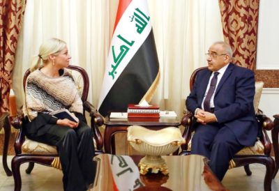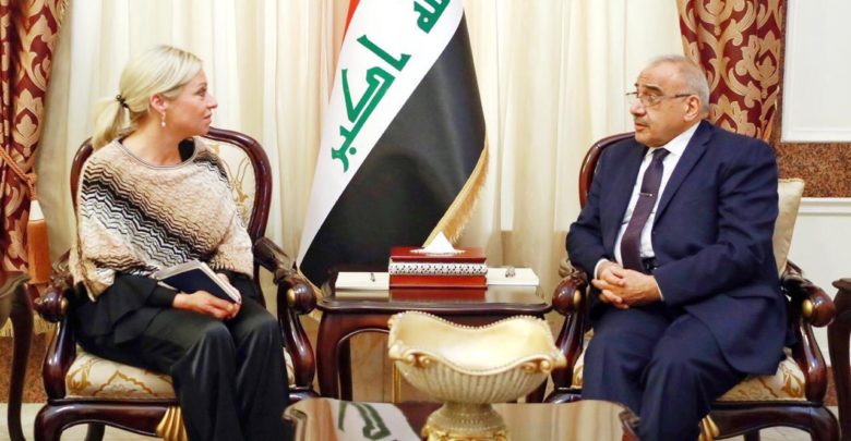 عادل عبدالمهدي يستقبل جينين بلاسخارت الممثلة الخاصة للأمين العام للأمم المتحدة