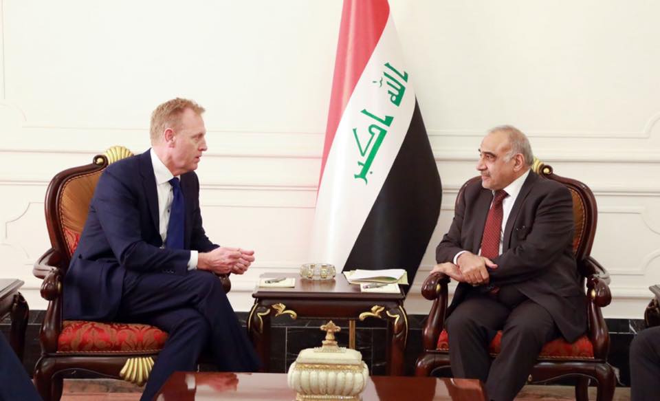 وقال المكتب الاعلامي لعبد المهدي في بيان، إن الاخير “استقبل، اليوم، وزير الدفاع الامريكي باتريك شاناهان”، مبينا انهما بحثا “تطوير العلاقات بين البلدين، والحرب ضد الارهاب وتطورات الأوضاع في المنطقة”. ونقل البيان، عن رئيس مجلس الوزراء، تأكيده، خلال اللقاء، على “العلاقات مع الولايات المتحدة، المساهمة في محاربة الارهاب وداعش، ووجوب التقيد بالاتفاقات الاساسية وهي محاربة الارهاب وتدريب القوات العراقية وليس اي شيء آخر”، مشددا على “عدم قبول اية قواعد اجنبية على الارضي العراقية”.