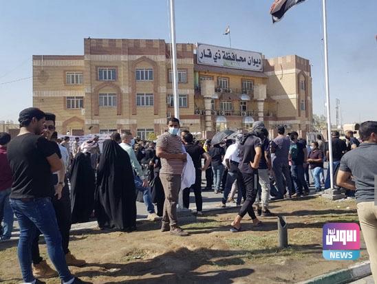 أغلق العشرات من خريجي الكليات والمعاهد من المعتصمين المطالبين بالتعيين على ملاك الشركات النفطية ديوان محافظة ذي قار وعدد من التقاطعات القريبة منه احتجاجا على عدم تحقيق مطالبهم بالتعيين ومنح درجاتهم الوظيفية إلى أسماء وجهات غير معروفة حسب قولهم.