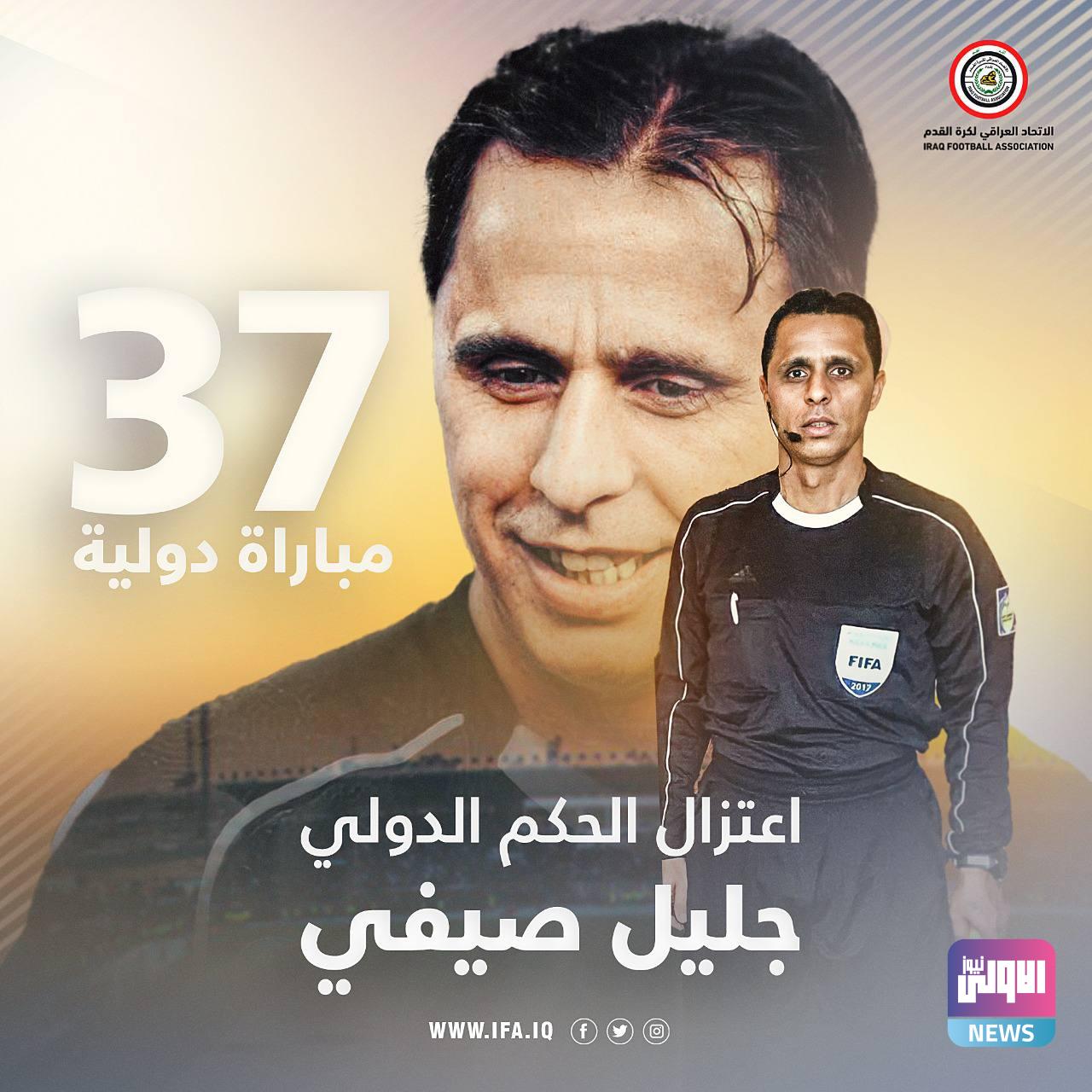 ستشهد غداً مباراةِ الطلبة والشرطة اعتزال الحكم الدولي المساعد (جليل صيفي) بعد مشوار ٣٧ عاماً حافل بالإبداع والتميز.