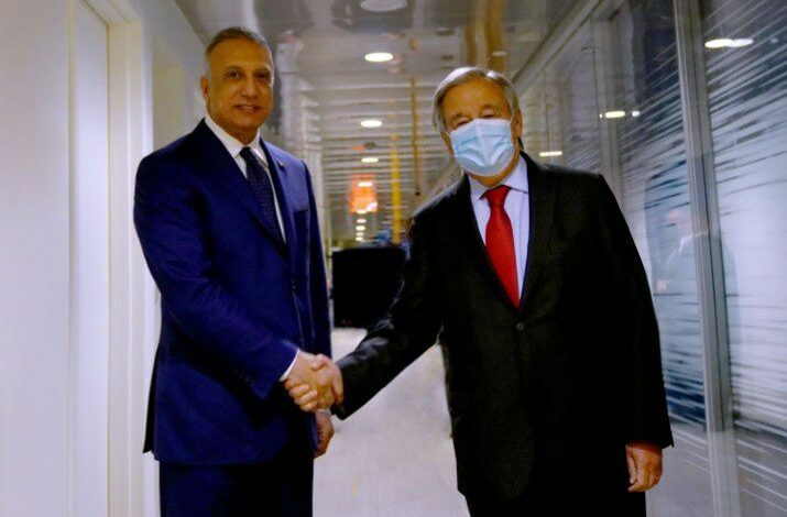 وذكر بيان للمكتب الإعلامي لرئيس الوزراء تلقته (الاولى نيوز) أن “الكاظمي التقى غوتيريش، في نيويورك، على هامش أعمال الجمعية العامة للأمم المتحدة، وبحث معه الأوضاع في العراق، وجهود الحكومة في تخفيف حدّة الخلافات السياسية، عبر تبنيها مبادرة الحوار الوطني بين القوى السياسية، وتطرق أيضاً إلى الوضع في مخيمات النزوح، وجهود الحكومة في غلق العدد الأكبر منها، وإعادة النازحين إلى مناطقهم الأصلية”.