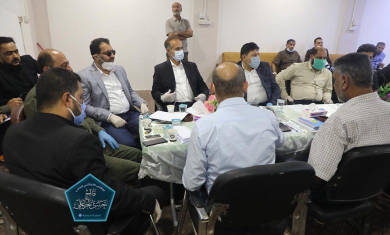 أجتمع النائب فالح الخزعلي مع آمري الوية وتشكيلات قيادة عمليات الحشد الشعبي للجهد الانساني في مقر القيادة لتوحيد العمل وتكثيف الجهود لتقديم الخدمات الضرورية في ظل الظروف الراهنة