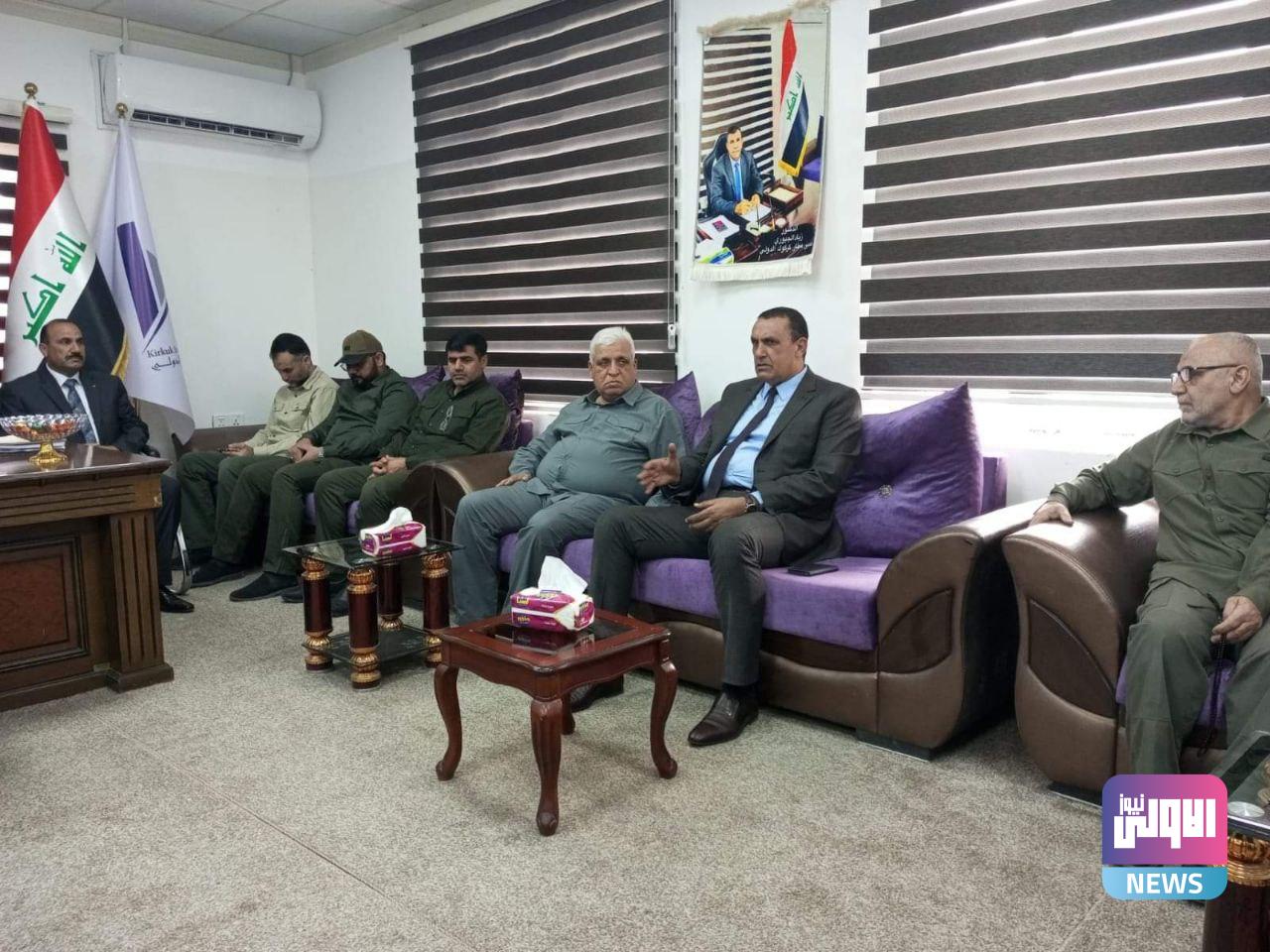 وكان في استقبال الفياض قائد محور الشمال للحشد الشعبي يلماز النجار وقائد عمليات كركوك و شرق دجلة حميد إبراهيم السهلاني ومحافظ كركوك راكان سعيد الجبوري وقائد المقر المتقدم للعمليات المشتركة الفريق الركن علي الفريجي وعدد من المسؤولين والوجهاء.