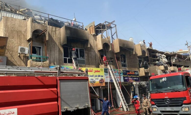فرق الدفاع المدني تخمد حريقاً في محال ومخازن تجارية ببغداد (صور)
