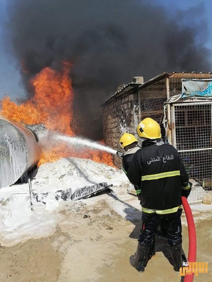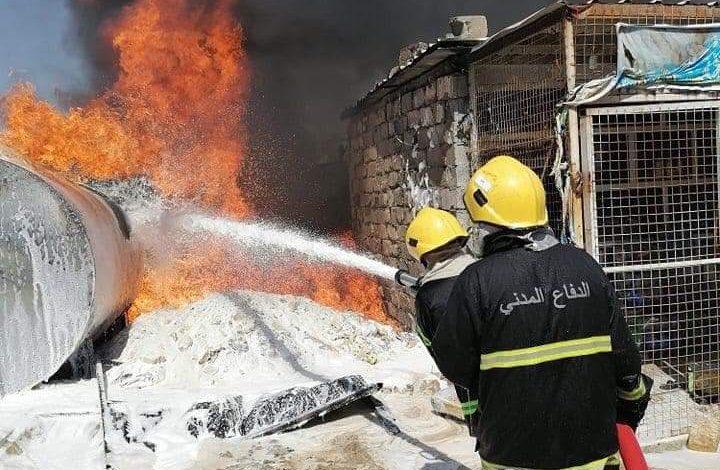 استنفرت عشر فرق تابعة لمديرية الدفاع المدني للسيطرة على حريق نشب داخل خزان وقود بداخله 75 الف لتر كاز تقريبا،