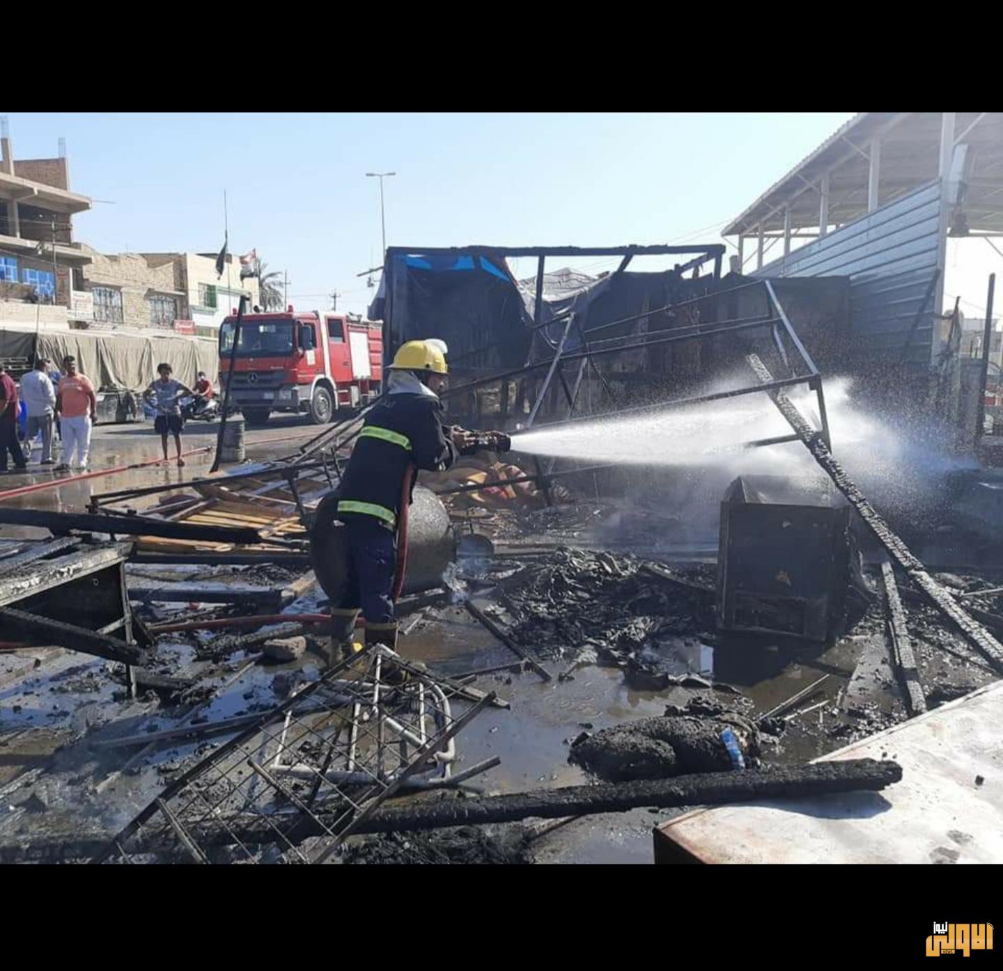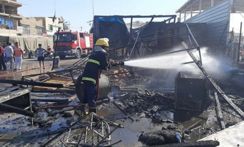 فرق الدفاع المدني تخمد حريقا شب في خيم للمتظاهرين بواسط
