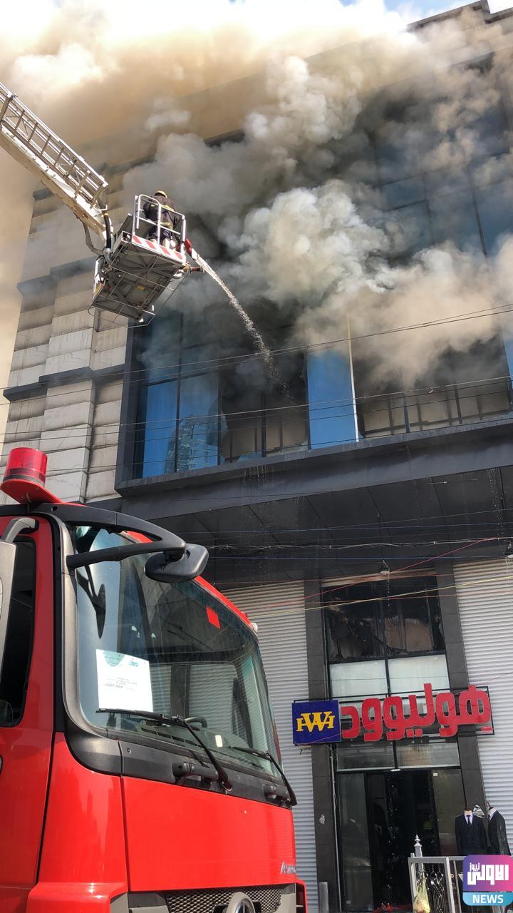 فرق الدفاع المدني تخمد حريق بناية “هوليوود” في المنصور وتنقذ عاملين أجنبيين