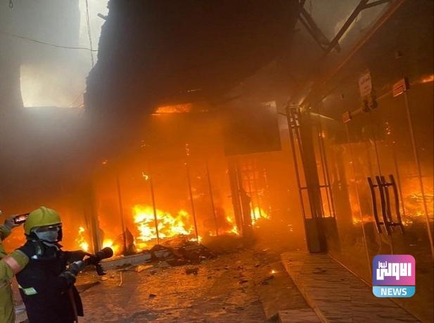 فرق الدفاع المدني تستنفر لإخماد حريق اندلع بمخزن تجاري في بغداد (صور)