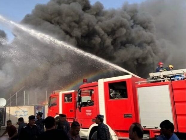 فرق الدفاع المدني تكافح حريقاً اندلع داخل معمل جنوب بغداد