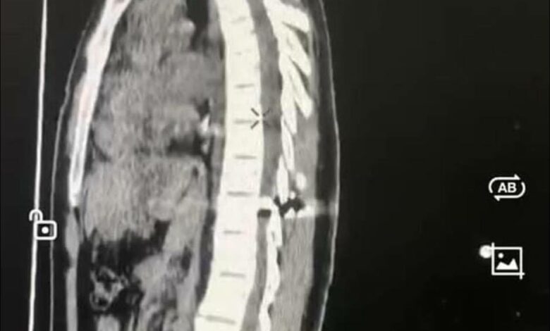 تمكن فريق طبي متخصص بجراحة الجملة العصبية في مستشفى الزهراء التعليمي في الكوت والتابع لدائرة صــحة واسط من استخراج طلق ناري نافذ الى الفقرة الظهرية من العمود الفقري ، لشاب بسبب حادث شجار