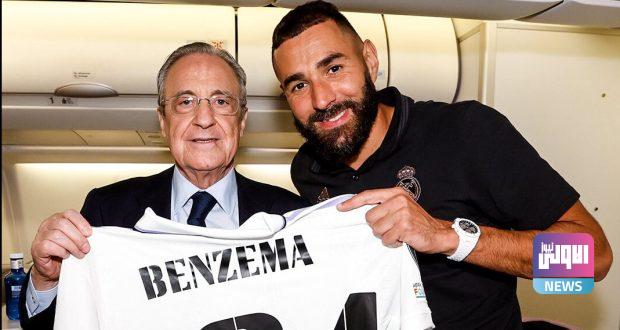 ونشر حساب ريال مدريد على موقع “تويتر” صورة لبيريز رفقة اللاعب، وهم يحملان قميص للفريق، وعليه رقم “324” أي عدد الأهداف بنزيما.