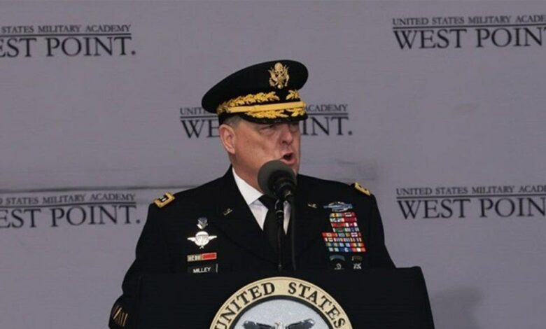 وقال ميلي خلال حضوره حفل تخرج بالأكاديمية العسكرية الأمريكية في ويست بوينت بولاية نيويورك: “نحن نواجه الصين وروسيا، اللتين تحاولان تغيير النظام في العالم القائم على القانون”.