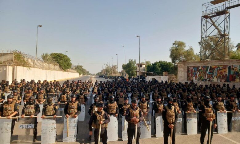 حيث، اظهرت صوراً، جزء من الانتشار الأمني ضمن مقتربات المنطقة الخضراء والبوابة التاسعة للتخطيط