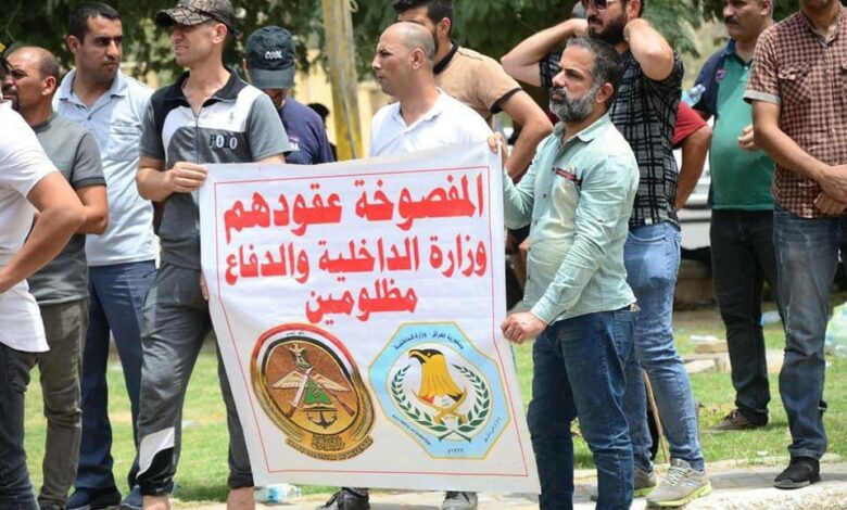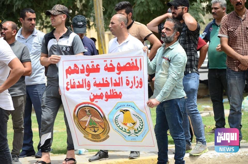 انتشرت قوات حفظ القانون لتأمين حماية المتظاهرين من المفسوخة عقودهم في منطقة الجادرية وسط العاصمة بغداد.