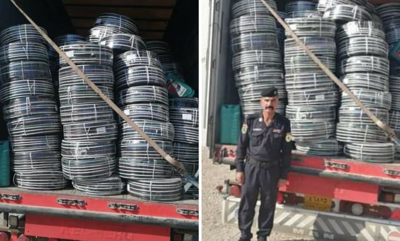 تمكنت مفارز مركز شرطة كمرك المنذرية التابعة لمديرية شرطة كمارك المنطقة الثالثة من ضبط عجلة حمل نوع مان محملة (صوندة ماء) 22.960 طنا، وعند تدقيق البضاعة تبين أنها تحمل وثيقة إطلاق وشهادة غير مطابقة لشهادة الفحص، تم تنظيم محضر ضبط أصولي، وسيتم عرض الأوراق التحقيقية أمام أنظار السيد قاضي التحقيق