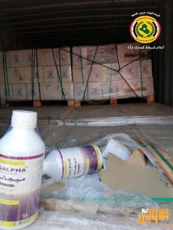 تمكنت مفارز مركز شرطة كمرك ام قصر التابعة لمديرية شرطة كمارك المنطقة الرابعة من ضبط حاويتين حديديتين تحتويان على (اسمدة كيمياوية والاخرى مبيدات حشرية ) تالفة ومنتهية الصلاحية، وتم تنظيم محضر ضبط اصولي وسيتم عرض الاوراق التحقيقة على انظار السيد قاضي التحقيق.