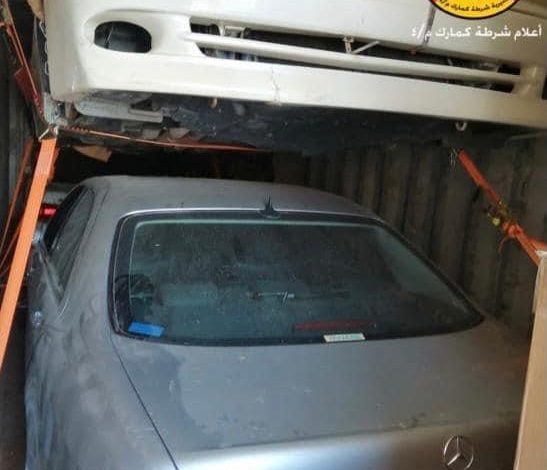 تمكنت مفارز مركز شرطة كمرك ام قصر التابعة لمديرية شرطة كمارك المنطقة الرابعة من ضبط واحباط عملية تهريب (4) حاويات حجم (40 قدم) تحتوي على (16) سيارة دون الموديل معدة للتهريب مخبأة خلف علب كارتونية.