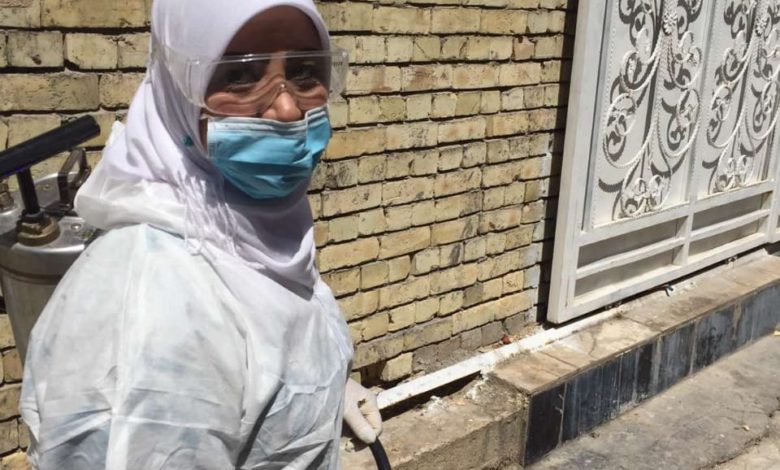 بالصور .. كادر التحري الطبي يقوم بتعفير وتطهير مناطق ملامسة المصابين في الكاظمية