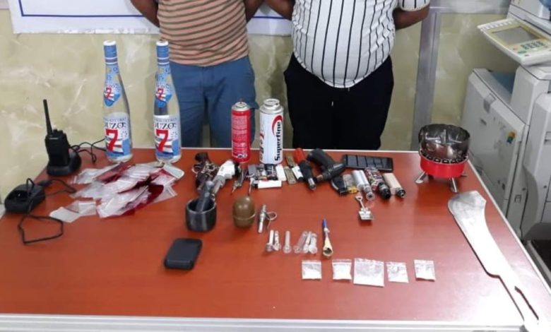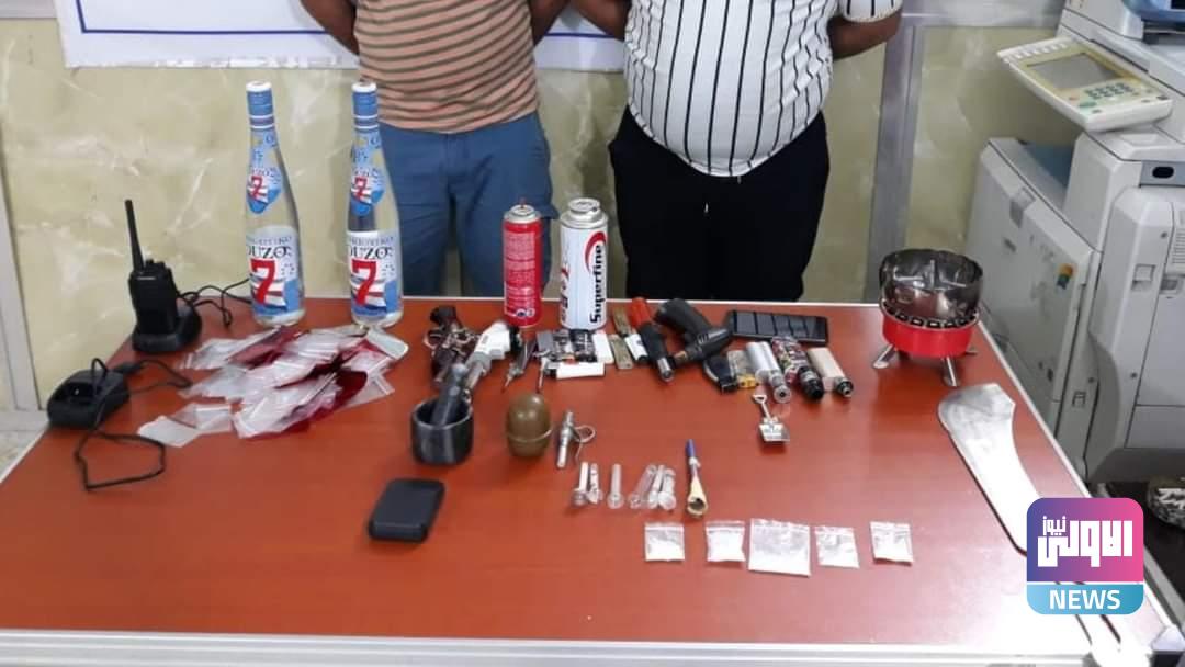 وفي سياق متصل تمكنت مفارز اخرى من إلقاء القبض على متهمين اثنين بعد تفتيش مكان تواجدهما في أحد أحياء كربلاء وقد ضبطت بحوزتهما كمية من المواد المخدرة داخل اكياس صغيرة مجهزة للبيع، كما تم ضبط رمانة يدوية وجهاز لاسلكي وميزان الكتروني و(٦) انبولات زجاجية تستخدم للتعاطي، هذا وقد اعترفا بقيامهما بالمتاجرة بالمواد المخدرة وبيعها داخل الاحياء وتم توقيفهما وفق المادة 28 مخدرات.
