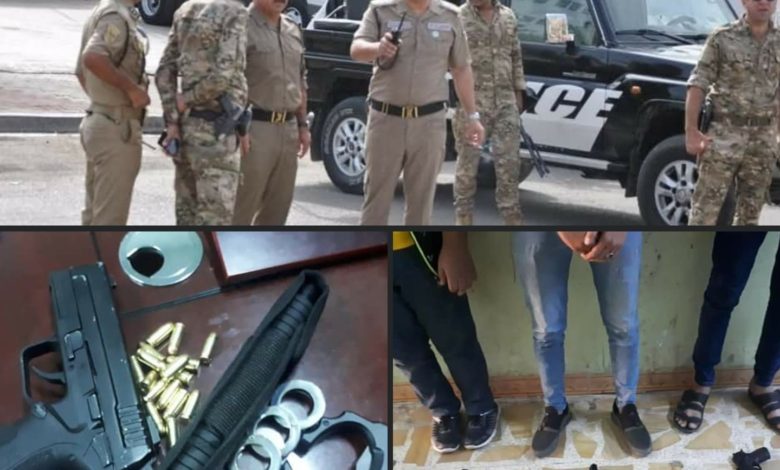 حيث اسفرت عن القبض على ثلاثة اشخاص مخالفين للقانون، بحوزتهم سلاح (مسدس)، وآلات جارحة، وعصا كهربائية، وتم تسليمهم الى المركز المختص حسب الاختصاص الوظيفي.
