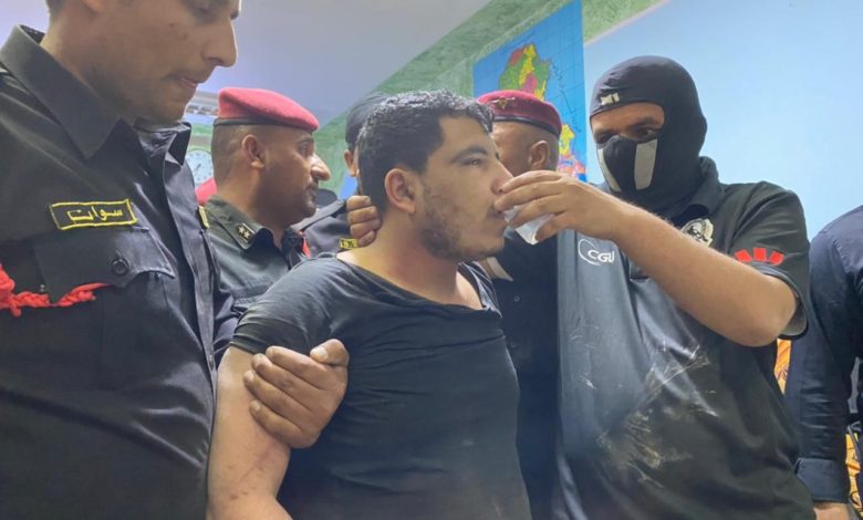 فيما وثق مقطع مصور آخر لحظة اعتقال عدد من الهاربين من السجن المخصص لقضايا المخدرات والإرهاب.