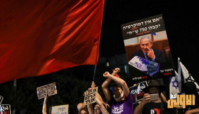 ويطالب المتظاهرون باستقالة نتنياهو بسبب لائحة الاتهام المقدمة ضده إلى المحكمة وتتضمن تهم الاحتيال والرشوة وإساءة الثقة.