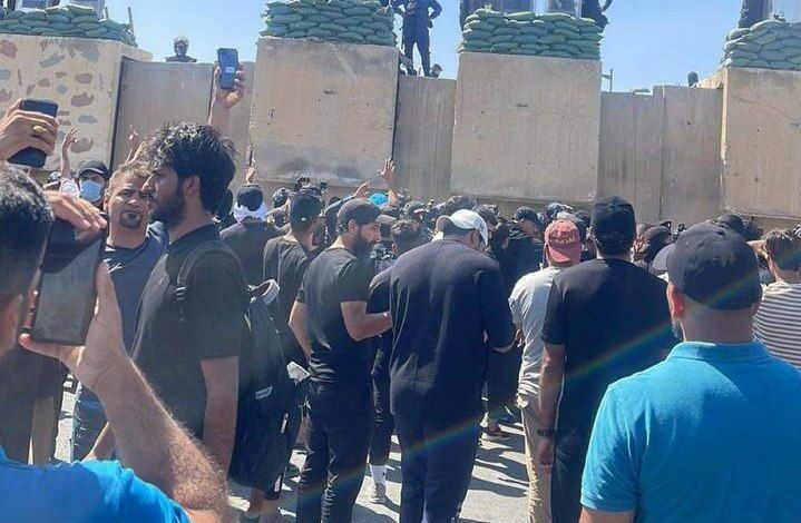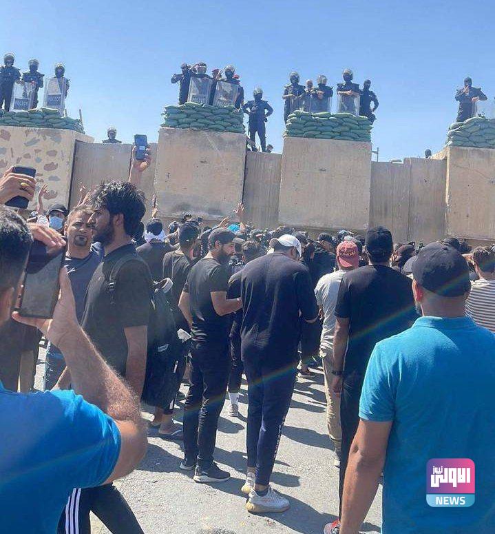 ووصل المتظاهرون إلى حاجز الصد الأول من جسر الجمهورية المؤدي إلى بوابة التخطيط، إحدى مداخل المنطقة الخضراء.