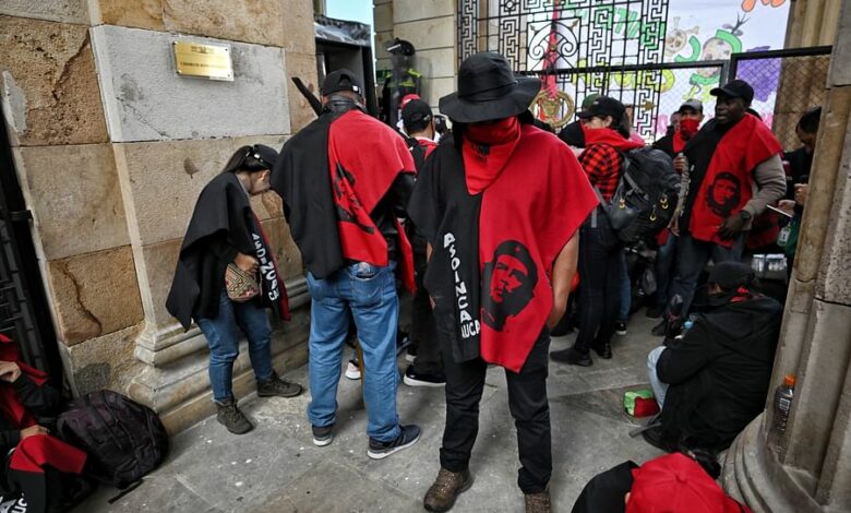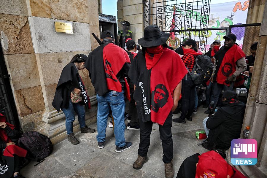 وقالت الأمانة العامة للأمن بالعاصمة الكولومبية في تقرير، إن نحو 500 رجل وامرأة يرتدون عباءات حمراء حاولوا دخول مبنى المجلس التشريعي.