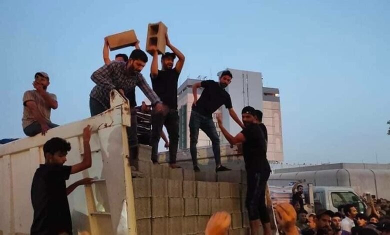 ذكر مصدر برلماني عن غلق متظاهري التيار الصدري جميع بوابات المجلس ببناء البلوك.