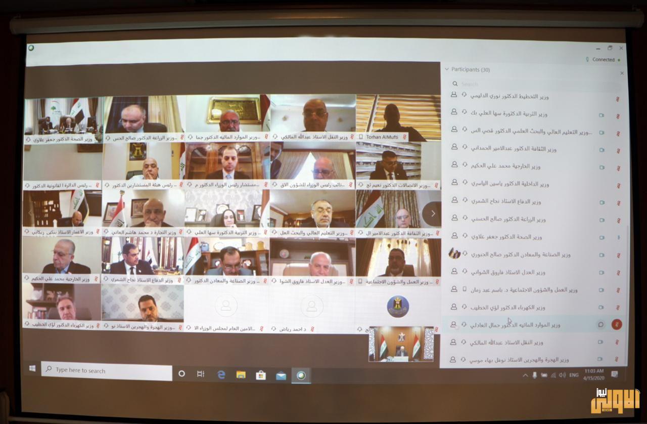 مجلس الوزراء يعقد جلسته الأعتيادية عبر دائرة تلفزيونية ويقرر عدة قرارات جديدة