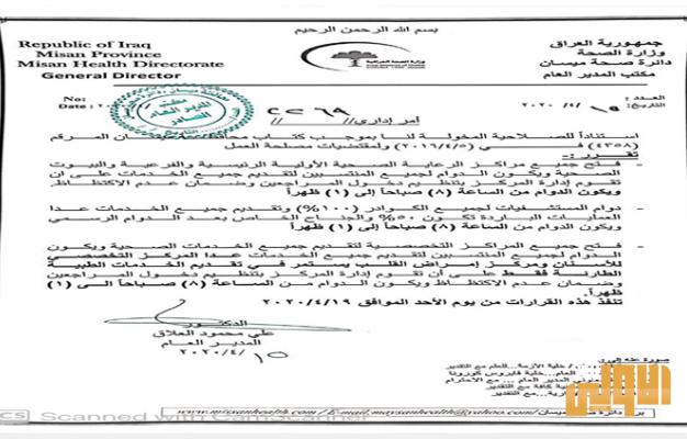 اعلنت دائرة صحة ميسان عن موافقتها على فتح جميع مراكز الرعاية الصحية الاولية الرئيسية والفرعية في المحافظة بناءا على موافقة الحكومة المحلية.