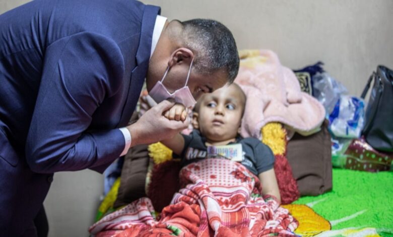 وقال محافظ البنك المركزي: “نحن في صندوق تمكين، نقف الى جانبكم، ونهنئكم بعيد الاضحى المبارك، وندعو الله ان يمن عليكم بالشفاء العاجل، ويبعد السوء عنكم وعن اهلكم”، مضيفاً: “سنقوم من خلال الصندوق بتقديم دعم اكبر للمستشفى وللأطفال في المستقبل القريب”.
