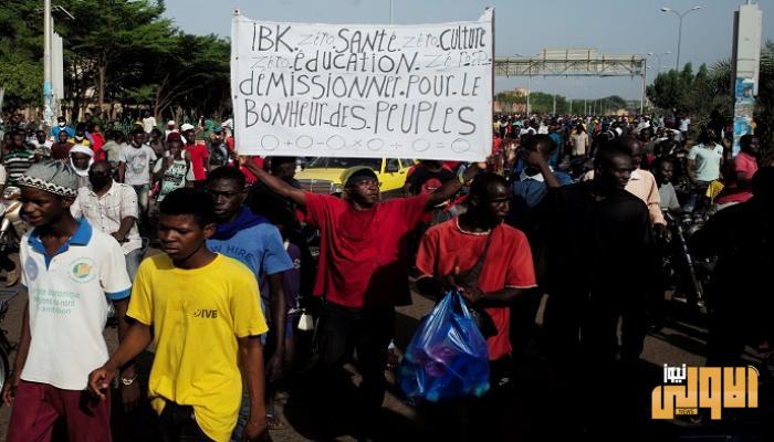 واحتشد آلاف المحتجين في ساحة الاستقلال بالعاصمة باماكو، وهم يحملون لافتات ويرددون هتافات تطالب الرئيس بالتنحي في ثالث مظاهرة حاشدة في الأسابيع الماضية.