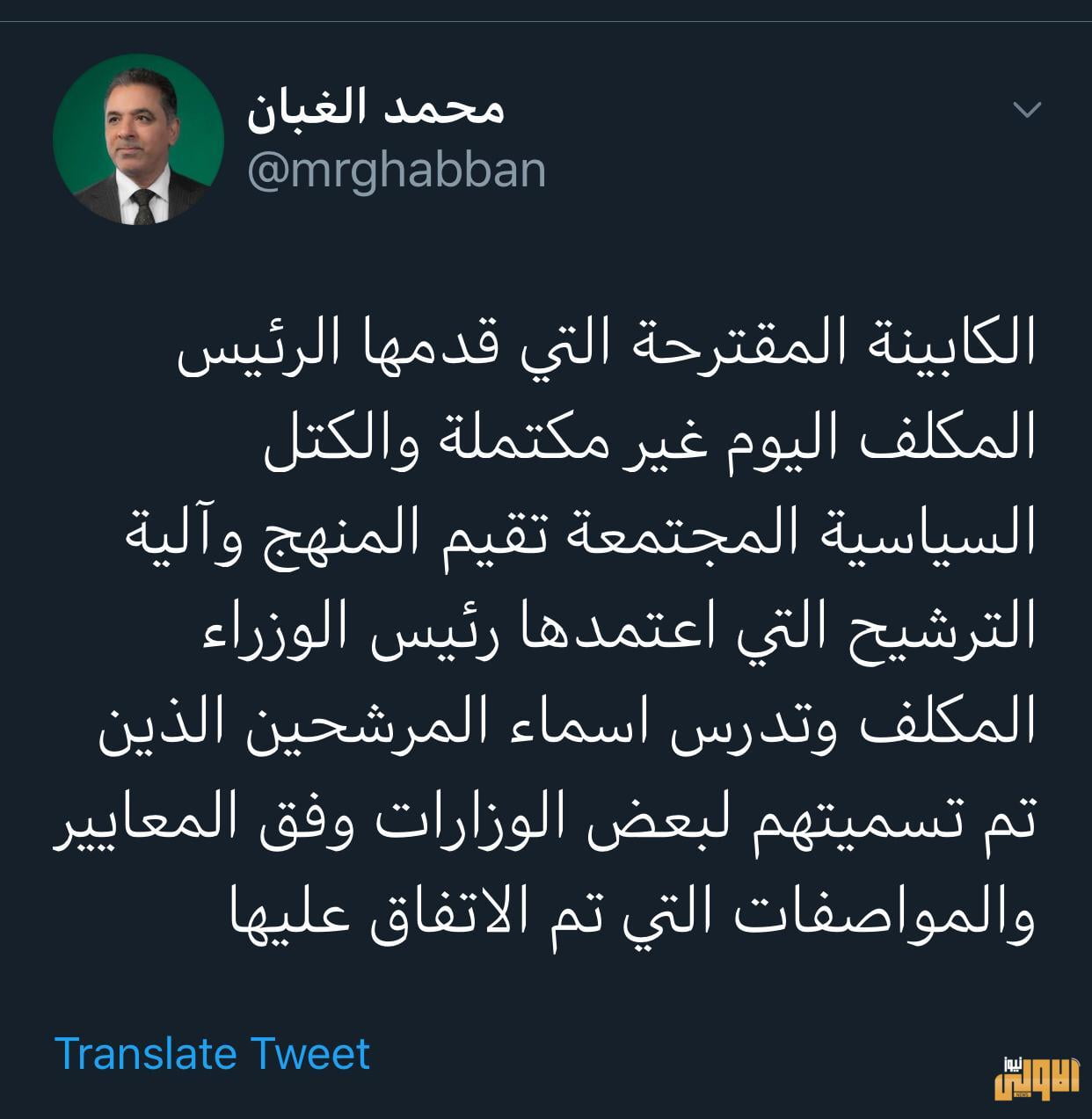 محمد الغبان : الكابينة التي قدمها الكاظمي غير مكتملة