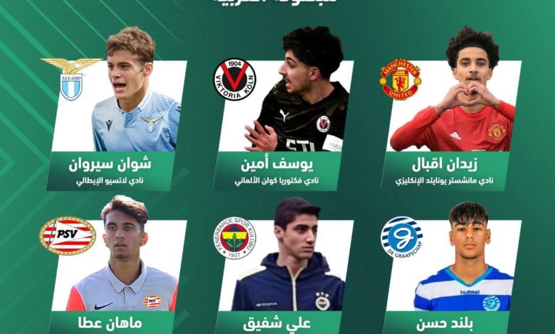 لاعب وسط مانشستر يونايتد الإنكليزي زيدان اقبال بتولد 2003، ولاعب وسط فكتوريا كولن الألماني الأول يوسف أمين من مواليد 2003،