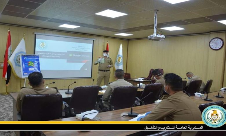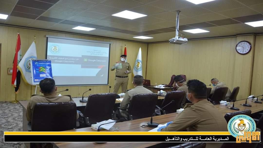 نظرا للظروف الراهنة وتفشي فايروس كورونا المستجد ولأهمية تطوير ملاكات وزارة الداخلية.وجه معالي وزير الداخلية السيد عثمان الغانمي، وبمتابعة السيد وكيل الوزارة للشؤون الادارية والمالية الفريق عبد الحليم فاهم فرهود، واشراف السيد مدير عام التدريب والتأهيل اللواء زياد طه علي، باعتماد اسلوب التعليم الالكتروني عن بعد من خلال منصات (Google clssroom) (Zoom)حيث اقامت مديرية التدريب والتأهيل/ مركز التدريب المتقدم، الدورة التعريفية الاولى عن المنصات الالكترونية تمهيداً لاجراء الامتحانات والاختبارات والمحاضرات من خلال المنصات الالكترونية، وكان عدد المشتركين فيها (٧) اشخاص من مختلف دوائر الوزارة. كما اكد سيادته على دور مديرية التدريب والتأهيل بايجاد الحلول المناسبة للتدريب من اجل تطوير وتأهيل منسوبي الوزارة.