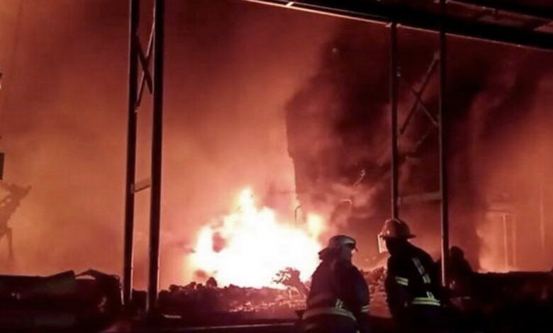 وأضاف: “يوجد هناك مصابون، شخصان، إنهم عمال المستودع، لقد تلقوا الإسعافات الأولية، وحياتهم ليست في خطر”.