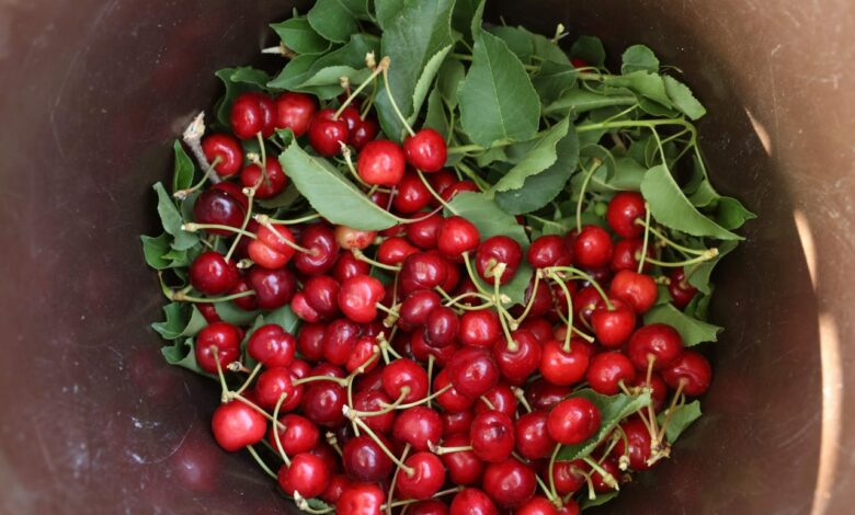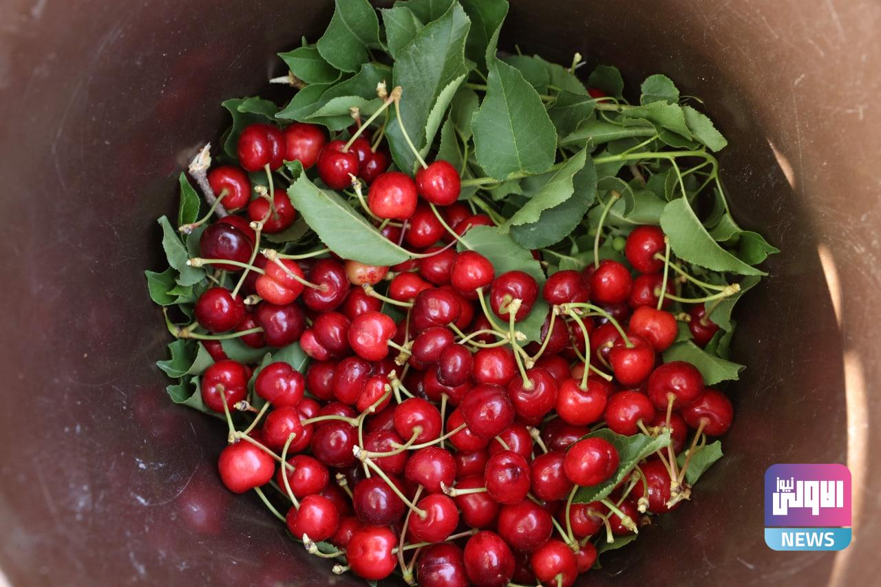 مزارعون سوريون يقطفون الكرز في حقل ببلدة الجوزيف في جبل الزاوية بإدلب (صور)