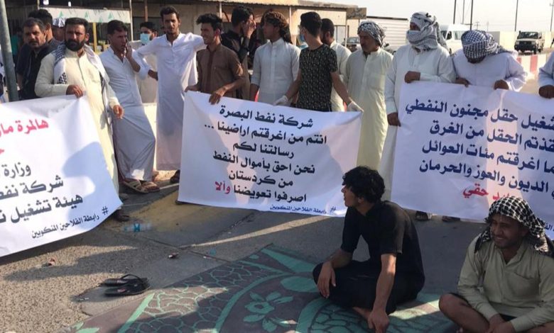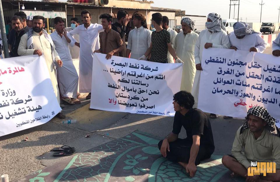 مزارعون يغلقون بوابة حقل مجنون النفطي للمطالبة بصرف مستحقاتهم