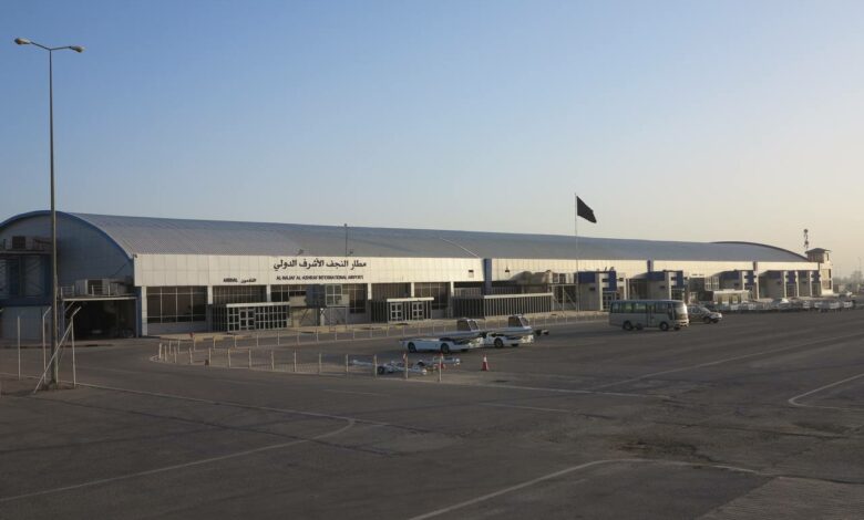 مطار النجف الأشرف الدولي يعلن إيقاف رحلاته الجوية بسبب العواصف الترابية