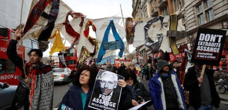 تحت شعار “أفرجوا عن أسانج”، تظاهر مئات الأشخاص، السبت، احتجاجا على إمكانية تسليم مؤسس موقع ويكيليكس، قبل يومين من بدء القضاء البريطاني درس طلب الولايات المتحدة التي تريد محاكمته بتهمة التجسس.