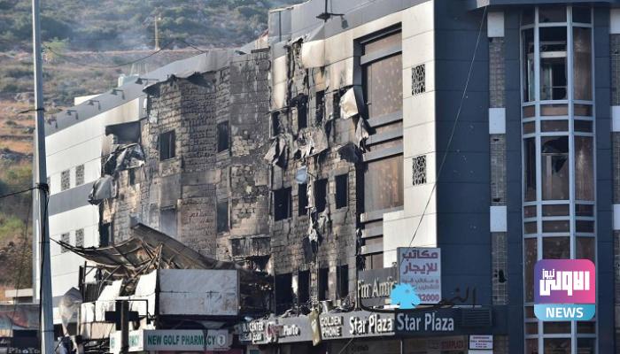 والتهمت النيران أحد المباني أثناء اشتباكات الليلة الماضية ولا يزال الدخان يتصاعد منه فيما تحمل نوافذه الندوب التي تركها الرصاص.