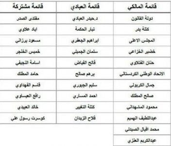 وذكر المعهد ان” القائمة الاولى برئاسة المالكي تضم دولة القانون وكتلة بدر والمجلس الاعلى وخضير الخزاعي وحنان الفتلاوي والاتحاد الوطني الكردستاني وجمال الكربولي وصالح المطلك ومحمود المشهداني وعبد اللطيف الهميم ومحمد اقبال وعبد الكريم العنزي”.