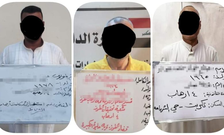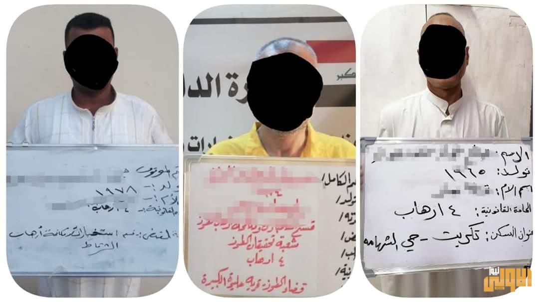 ومن خلال التحقيقات الأولية اعترف بأنتمائه لعصابات داعش الإرهابي وشغل منصب المسؤول الشرعي لقضاء الطوز، فضلا عن صدور قرار بالقبض عليه وفق أحكام المادة 4 إرهاب، كما وألقت المفارز القبض على إرهابيين اثنين في قضاء الشرقاط مطلوبين وفق أحكام المادة 4 إرهاب لانتمائهما لعصابات داعش الإرهابية، وتم تدوين أقوالهما وإحالتهما للقضاء لإكمال أوراقهما التحقيقية لينالا جزاءهما العادل.