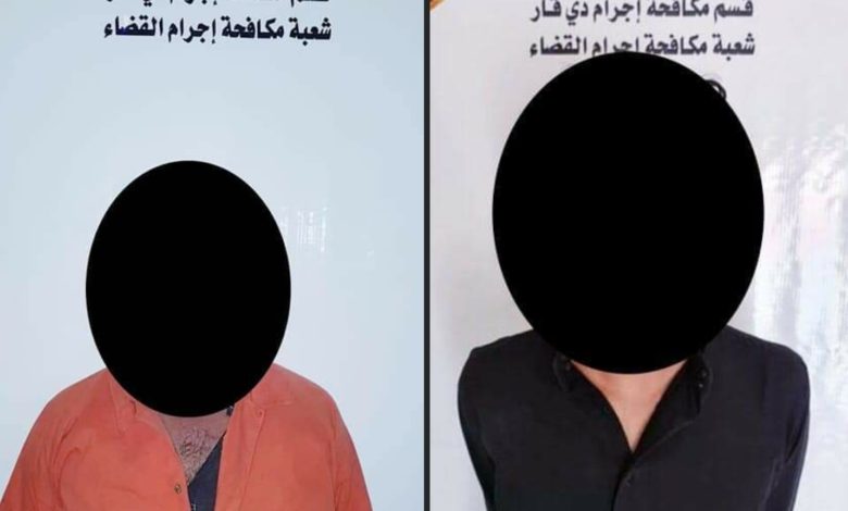 تمكنت شعبة مكافحة الاجرام في محافظة ذي قار من القبض على المتهم (ع.م.ف) تولد 2003 والمتهم (ع.ك.خ) تولد 1979 من سكنة قضاء الاصلاح،