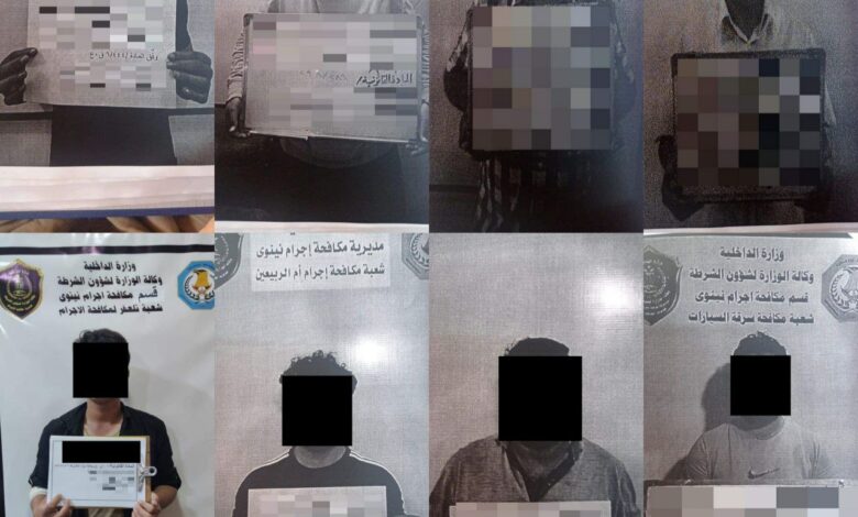 وعلى صعيد متصل تمكنت مديرية مكافحة الاجرام من القاء القبض على سبعة متهمين مطلوبين للقضاء، ثلاثة منهم تم القبض عليهم بالجرم المشهود خلال قيامهم بسرقة مادة النفط الابيض من عجلة تعود لاحد المواطنين، وتم توقيفهم وفق المادة ٤٤٤ \ ٦ ق ع ، وباقي المتهمين صادر بحقهم اوامر قبض وفق المواد ٢٨٩ \ ٢٩٨ و٤٢١ و ٤٤٦ ق ع .
